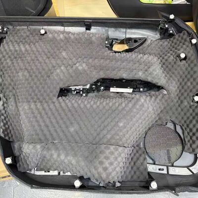 2, W panelach drzwiowych gruba warstwa pianki akustycznej jest połączona z barierą dźwiękową, tworząc dwuwarstwową ochronę przed hałasem.
